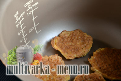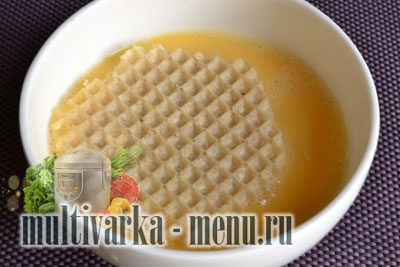 Вмочуємо вафельки з фаршем в яйце і відразу викладаємо в чашу мультиварки. Яка вже працює пару хвилин в режимі смаження.