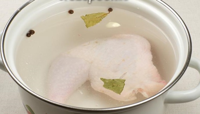 Для дієтичного супу можна взяти куряче філе, воно менш жирне. Додатково можна ще зняти шкірку з м’яса. Каструля повинна вміщати в себе не менше 2-х літрів води. Після закипання води, слід варити курку близько 30 хвилин.