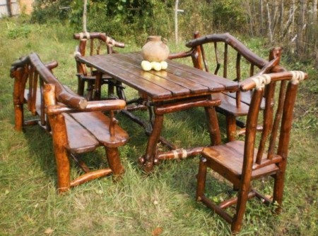 Дерев’яна меблі екологічні, відрізняється лаконічністю, красою і простотою виготовлення. Для саду найчастіше використовують наступні матеріали: дошки, рейки, бруски, фанеру, колоди, корчі, спили дерев, пеньки і гілки. Також часто використовують для створення столу — котушки, дрова, бочки, ящики і піддони. До речі меблі з піддонів виглядає дуже оригінально в саду. Красиво оформити заміський ділянку можна садовими лавками і дачними гойдалками.