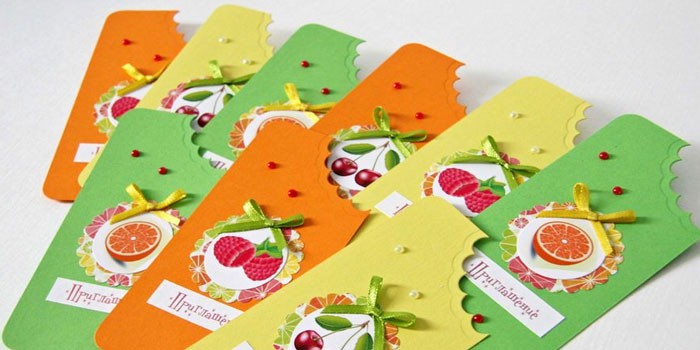 - Власноруч спорудити унікальні листівки. Їх можна зробити у формі кораблика, сонця або цифри, використовуючи ножиці, кольоровий папір і клей. Ті, хто не хочуть малювати, можуть просто роздрукувати сподобалися елементи на принтері. Любителі хенд-мейду в таких моментах проявляють свою натуру і радіють створеного шедевру.