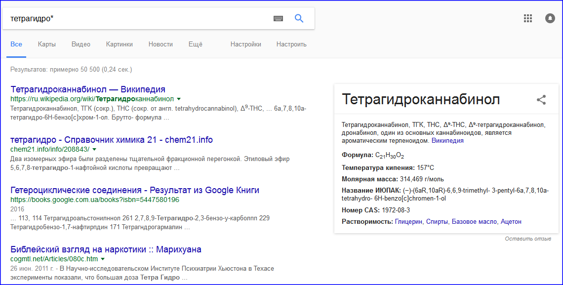 Наприклад, ви раптом забули, як називається речовина, в коноплях, але пам’ятайте, що воно починалося на «тетрагидро-».