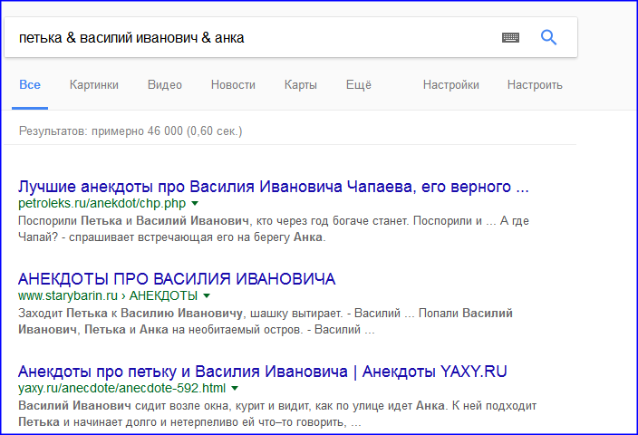 Наберіть петька і василь іванович & анка, і вам не доведеться перелопачувати гори анекдотів без участі Анки-кулеметниці.