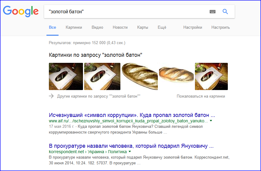 Але якщо набрати «золотий батон», Гугл знайде тільки сторінки з точним співпадінням.