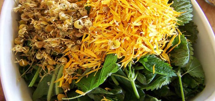 - Для приготування натурального барвника беруть кропиву, ромашку і шавлія.