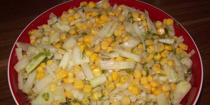 Дуже оригінальне і шалено смачне блюдо. Салат з кольрабі і кукурудзи красиво виглядає на фото, бо виходить дуже яскравим. До нього додаються крабові палички, яйця, зелень. Словами складно передати, наскільки чудовим він виходить. Такий салатик потрібно готувати і куштувати. Це просто дивовижне поєднання смаків добре знайомих усім продуктів.