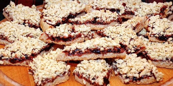 - Шари. Якщо б у виробі були присутні тільки тісто, то це було б нудно. Крім того, печива без начинки ризикують вийти занадто сухими. Традиційний рецепт передбачає наявність одного або декількох шарів негустого джему.