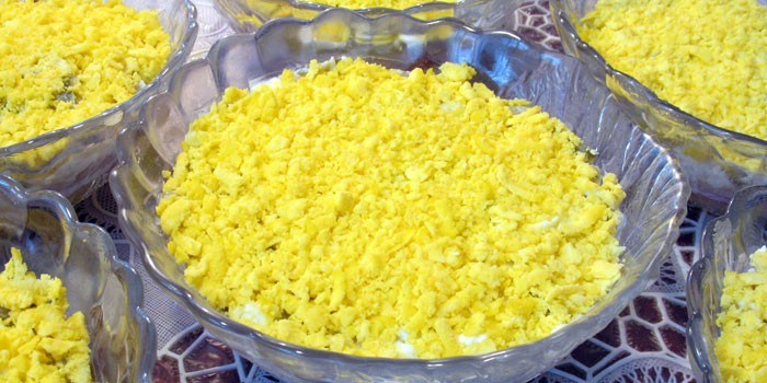 Незвичайне ефектне блюдо – салат Полянка з печерицями. Закуска легко готується, але чудово виглядає на святковому столі (як на фото). Для її створення потрібні вам найбільш звичні, доступні продукти: овочі, яйця, твердий сир, варена курка та консервовані гриби. Коли ви освоїте цей рецепт досконало, можна буде експериментувати, вибираючи замість звичного сорти ніжні гливи або пікантні опеньки, маслюки, навіть лисички.