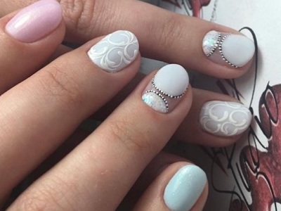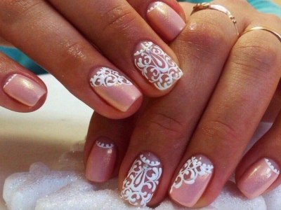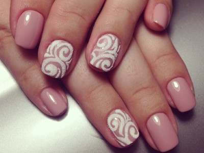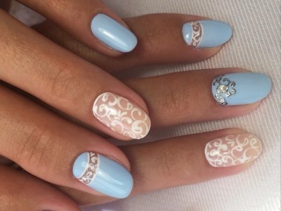 Цей нейл-арт ідеально впишеться в образ для наречених і романтичних красунь. Виводите візерунки на шарі прозорого топа, а решта фарбуєте кольоровим лаком. На виході отримуєте неймовірно вишуканий, м’який нейл-арт, який викличе захоплення навіть у самого невіруючого в Красу людини.
