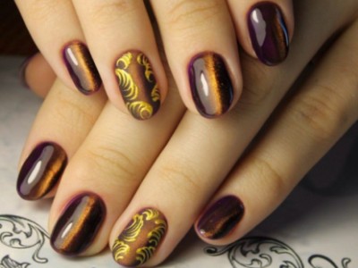 Також вензелі чудово виглядають на матовому покритті, на лаку з ефектом котячого ока, можна поєднувати контрастні кольори бази і візерунків, зробити візерунки градієнтними і повністю зліпити з гель-фарби… Словом, є варіанти на абсолютно будь-який смак і колір!