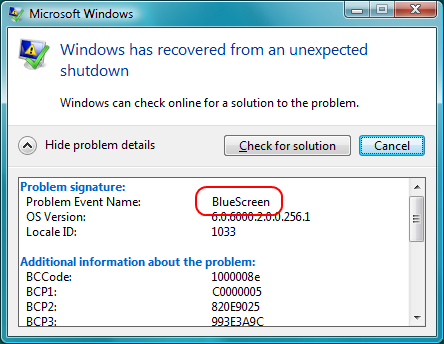 Проблема з ім’ям події BlueScreen може з’явитися в ОС Windows (наприклад, Windows 7) після деякого часу роботи. Або, скажімо, вискочити при запущеній комп’ютерній грі. Одноразове поява BlueScreen можна проігнорувати — можливо, нічого страшного ще не відбулося. Якщо ж ім’я події проблеми BlueScreen починає з’являтися періодично, то слід задуматися про можливі неполадки з комп’ютером і їх усунення.