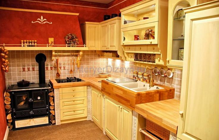 Стіни в стилі прованс не гладкі, фактурні. Зазвичай їх обробляють декоративною штукатуркою або обклеюють рельєфними шпалерами під фарбування. Для оформлення фартуха використовують декоративний цегла, мозаїку або кахельну плитку з яскравим декором.