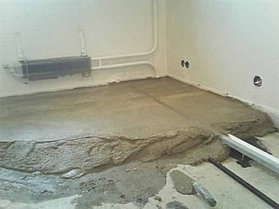 Заливка стяжки із суміші керамзиту, піску і бетону. Помилка в дотриманні пропорцій. На поверхні стяжки залишилися калюжі.