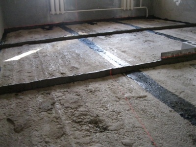 Як ви самі можете судити, цей спосіб набагато цікавіше і простіше, адже ви можете затока невелику ділянку кімнати сумішшю, відразу ж поверх неї заливати саму стяжку. Таким чином, ви позбавляєте себе «задоволення» ходити по хрусткою слизькій трясовині. Залили перший шар на 60-70 см — стягнули фінішної сумішшю, залили ще — ще стягнули, і так до кінця. Чи Не правда зручно? До речі, ширину першого шару можете обирати самостійно, головне, щоб вам було зручно заливати фінішний шар і не вийшло так, що при завершенні заливки ви ногами і руками потонете у вже готової стяжки, звівши тим самим всі ваші старання і зусилля нанівець.