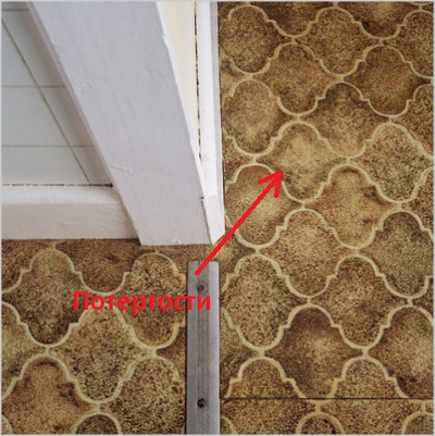 При регулярному митті підлог гарячою водою верхній шар лінолеуму стирається, що стає причиною появи негарних «залисин» в малюнку.