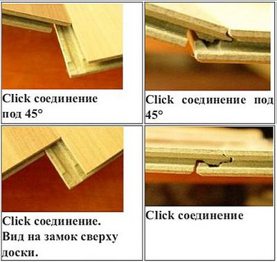 Залежно від способу кріплення ламінат ділиться на клейовій і замковий (бесклеевой). Замковий ламінат поділяється, у свою чергу, на два типи покриття з різними системами замикання.