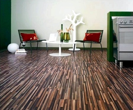 Паркет — це дорого і непрактично. А якщо замінити його на ламінат, який нічим не видасть себе, а буде лежати на підлозі і всім своїм виглядом показувати, що він самий «справжній паркет», тоді не доведеться витрачати час і гроші на покупку і монтаж такого примхливого покриття. Приміщення, оформлене світлим ламінатом, виглядає більше і просторіше. Мінімум меблів, мінімум кольору і квартира перетвориться в строгий і лаконічний еко-будинок.
