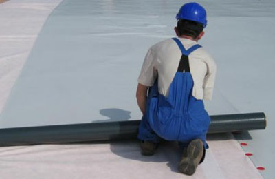 - На підготовлену (очищене, прогрунтованное і просушену) підставу укладається шар листової або рулонної гідроізоляції. Допускається використовувати руберойд, гідростеклоізол або інші сучасні матеріали. Не забувайте про необхідність армування за допомогою поліестеру або склотканини. Монтаж може здійснюватися, як гарячим, так і холодним способом. У першому випадку нанесення відбувається за допомогою газового пальника, у другому — за допомогою пульверизатора, шпателя або кисті;
