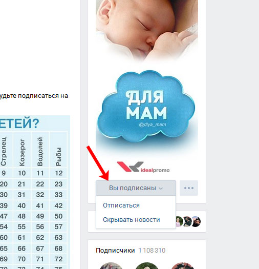 По-третє, якщо клікнувши по кнопочці «Ви підписані» в випадаючому меню потрібного пункту немає, значить, це не «Відкрита група», а «Публічна сторінка». Запрошувати людей в такті паблики, на які Ви підписані, не можна.