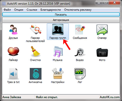 Як бачите, у програми багато різних функцій, але нас цікавить швидке видалення всіх груп зі свого профілю, тому клацніть по іконці «Парсер груп».