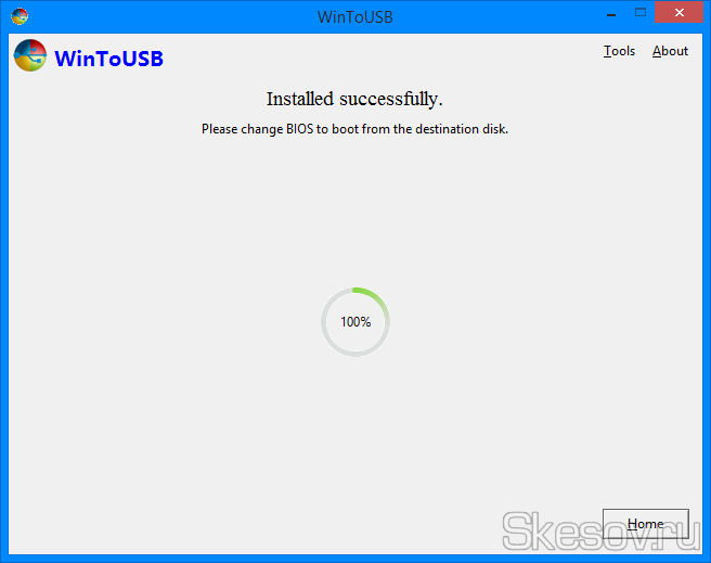 5) По завершенні тиснемо кнопку «Home». Перезавантажуємо комп’ютер з вибором в якості завантажувального пристрою USB диск.