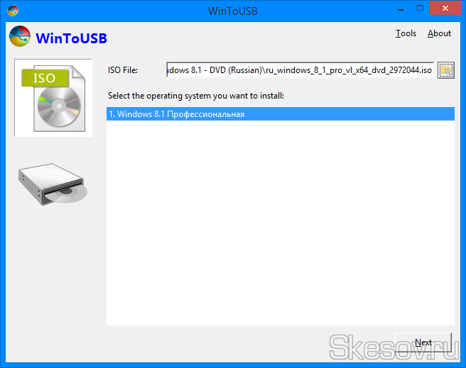 2) Вибираємо ISO файл інсталятора системи, яку ми хочемо бачити у себе на USB диску. З’явиться вибір випуску системи, яку потрібно встановити. Вибираємо і тиснемо Next: