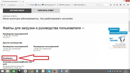 Драйвера на самсунговский монітор можна завантажити на офіційному сайті виробника.