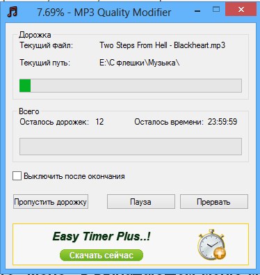І от, через 30 хвилин після безрезультатних пошуків мені вдалося все ж знайти бажану програму – MP3 Quality Modifier. Вона знаходиться у вільному доступі (можна завантажити безкоштовно) і працює з аудіо-файлами в пакетному режимі. До речі, щоб ви довго не шукали де можна скачати цю програму, я вирішив викласти її вам. Качаємо і користуємося на здоров’я.