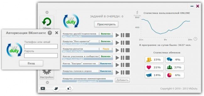 Існує утиліта, яка була створена для того, щоб накручувати передплатників в соціальній мережі VK. Ця утиліта має назву «Vkduty». Ця найпопулярніша програма, що працює на безкоштовній основі, вона тридцять днів після процесу інсталяції. В цьому софті є декілька режимів роботи, кожен з яких найбільш дієвий для певної кількості людей.