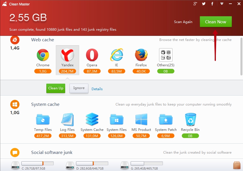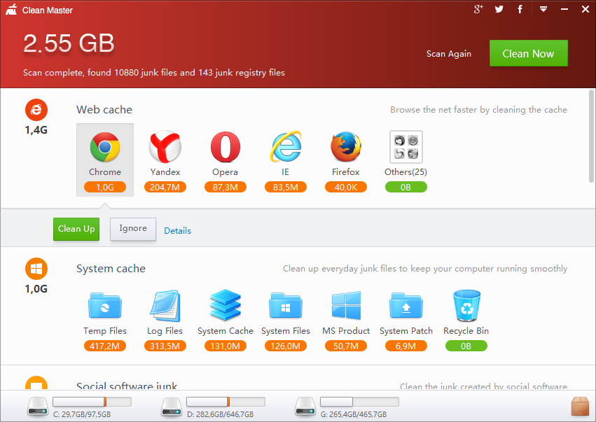 Clean Master — програма, призначена для очищення операційної системи. Величезну популярність вона отримала серед користувачів мобільних пристроїв на Android, і через якийсь час була випущена desktop-версія, яка справляється зі своїм завданням нітрохи не гірше.