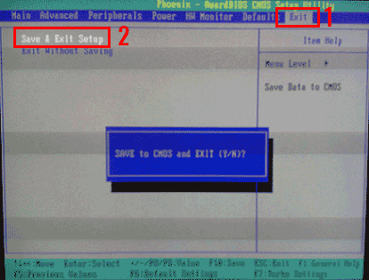 • Відкрийте вкладку «Exit», виберіть «Save and Exit», напишіть Y і натисніть Enter.