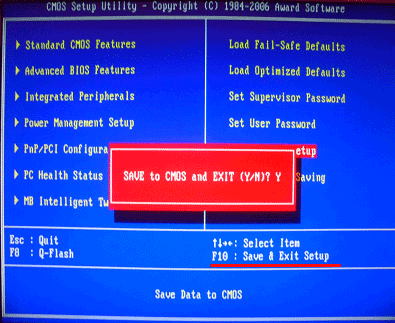 • Натисніть кнопку, що відповідає за команду «Save and Exit». В моєму прикладі це F10. Система уточнить, чи дійсно ви хочете застосувати зміни – напишіть Y (тобто Yes – «Так») і натисніть Enter.