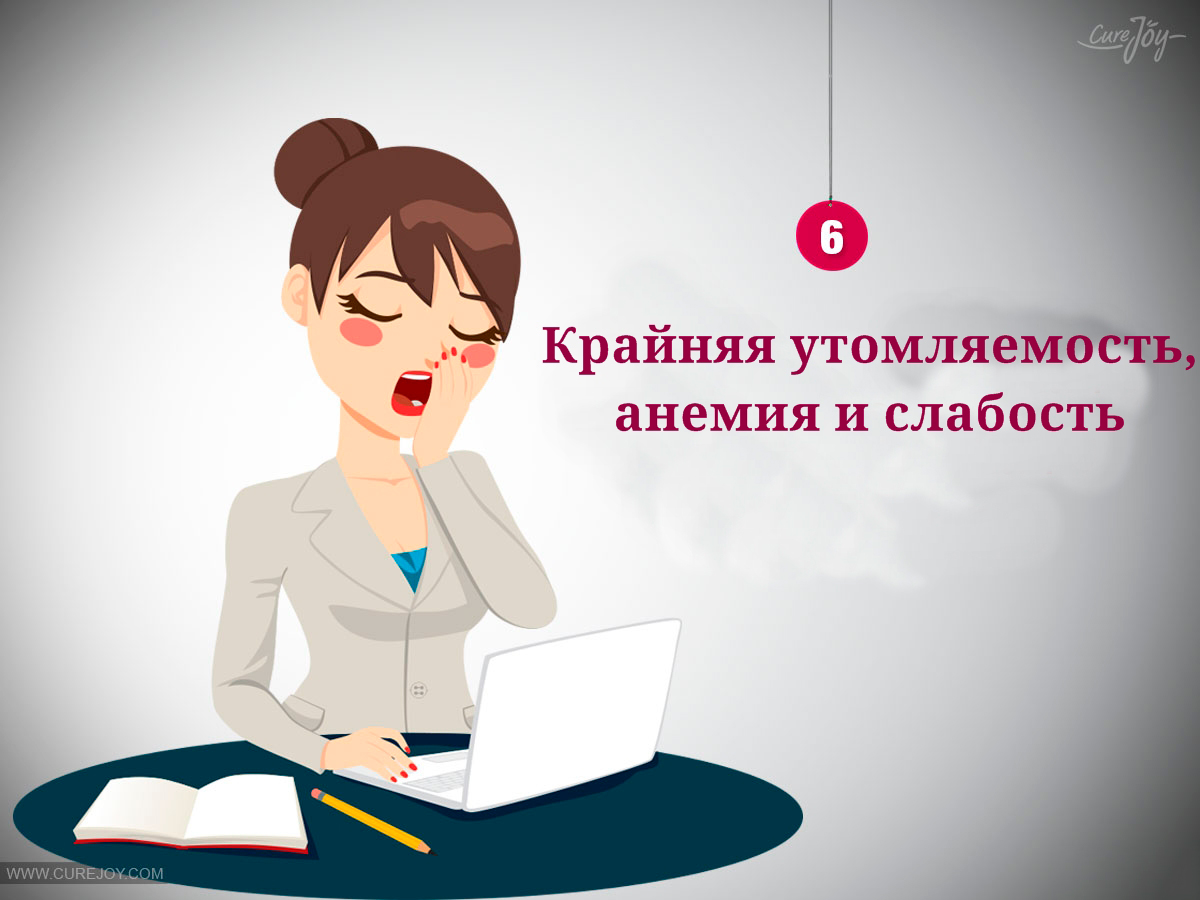 Нирки виробляють гормон еритропоетин, який допомагає еритроцитів переносити кисень. Але при хворобі рівень гормону помітно знижується, що призводить до анемії, відчуття слабкості і стомлюваності.