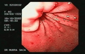 Хронічний антрум гастрит. Цю форму гастриту поділяють на два періоди: ремісії та рецидиву. Ремісія характеризується утиханием симптомів, хворий живе щасливою повноцінним життям. Клініка рецидивів схожа з клінікою гостро протікає гастриту. Мають сезонністю – з’являються у більшості випадків навесні і восени. Виділяють два підтипи хронічного гастриту. Еритематозний тип схожий з ерозивно формою захворювання. Відмінною рисою стають еритеми – висипання яскраво-червоного кольору у вигляді овалу або кола. Пошкодження поверхневі, під час загострення стають глибше, трансформуються в маленькі виразки. Знижується моторна функція шлунка. В процесі згасання симптомів зрідка утворюються рубці на місці загоєння рани.