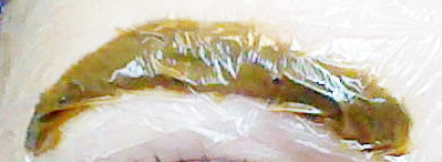 Потім намічаються контури нової брови і видаляються непотрібні волоски. Я не виношу, коли висмикують волоски пінцетом, тому їх видалили шовковою ниткою. Потім в хід йде натуральна хна і в результаті виходять дуже красиві, насичені брови. Тепер приємно виглядати в дзеркало, результат прекрасний.