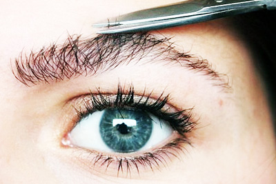 Один з альтернативних способів підстригання волосся ножицями. Щоб акуратно оформити брови, візажист повинен зачесати їх наверх і підстригти волосся, які сильно стирчать і відрізняються від інших завдовжки. Але при застосуванні ножиць завжди є ризик, що брови будуть виглядати занадто прореженными, до того ж, стрижка порушує структуру волосків і вони в подальшому можуть рости в різні сторони.