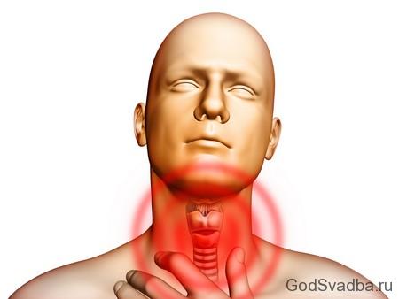 Дана хвороба може супроводжуватися запальним процесом слизової оболонки горла.