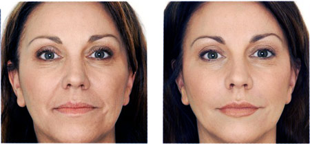 Ін’єкції ботулотоксину в лоб блокують активність лобової м’язи, і людина вже не може хмуритися і збирати шкіру в складки. При цьому за рахунок ослаблення натягу латеральних м’язів здійснюється ефект підтяжки брів і погляд стає більш відкритим. Досвідчений фахівець, який досконало знає анатомію особи і механіку лицьової мускулатури, може коригувати опущення куточків губ і інші вікові зміни.