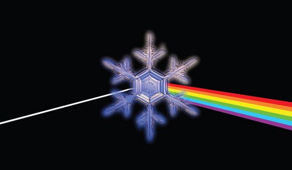 Сніжинка складається з кристаликів води, мікроскопічного розміру. Невже нам просто здається, що замет білого кольору. Адже веселка теж різнобарвна, а це всього лише обман зору. Сніг нам здається білосніжним, коли на нього потрапляють сонячні промені. В залежності від яскравості світлової хвилі, колір снігу може бути: