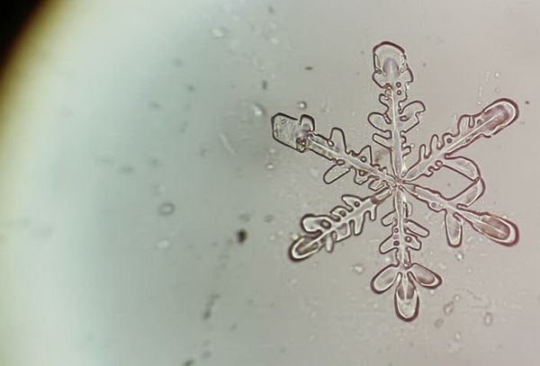 Сніжинка під мікроскопом на світлі прозора. Це обумовлено чистотою і відсутністю домішок і повітряних бульбашок. Пропускаючи сонячні промені, лід, як і сніжинка буде прозорий.