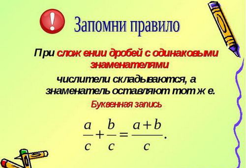 Для початку згадаємо правило обчислення для дробових виразів із загальним знаменником: