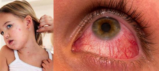 Рис. 9. На фото симптоми кору: збільшені лімфатичні вузли і кон’юнктивіт.