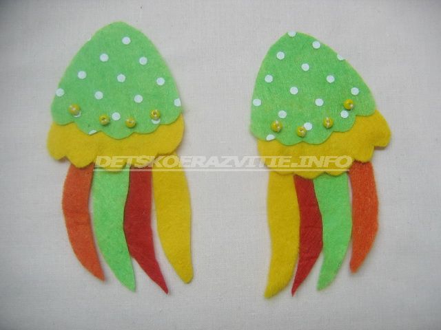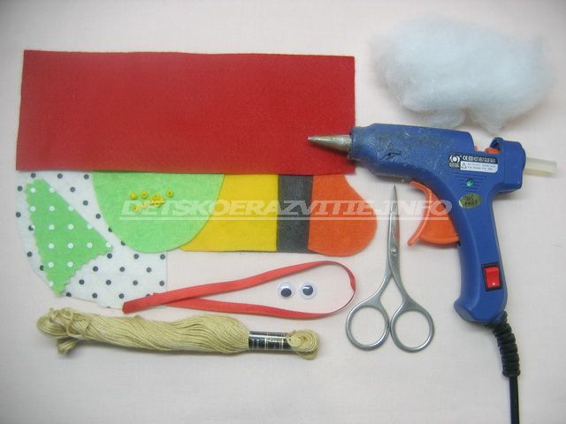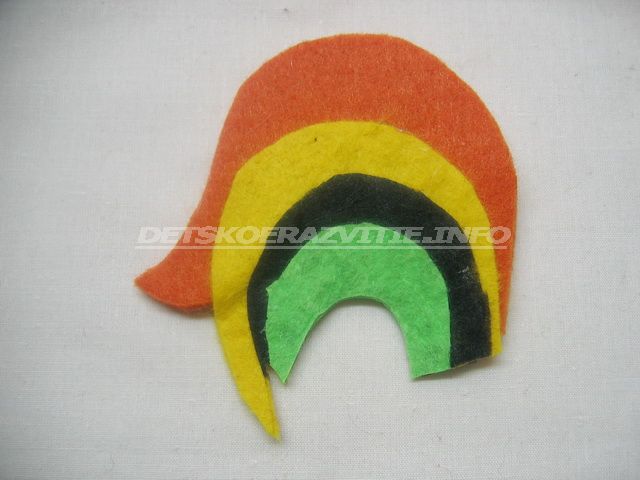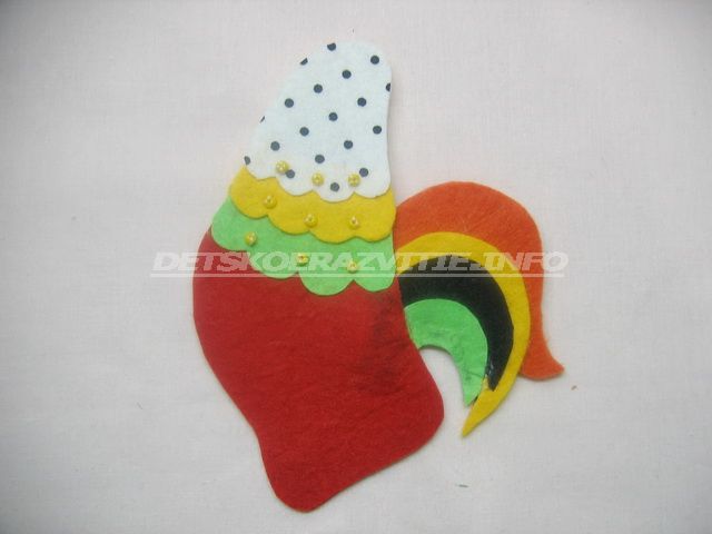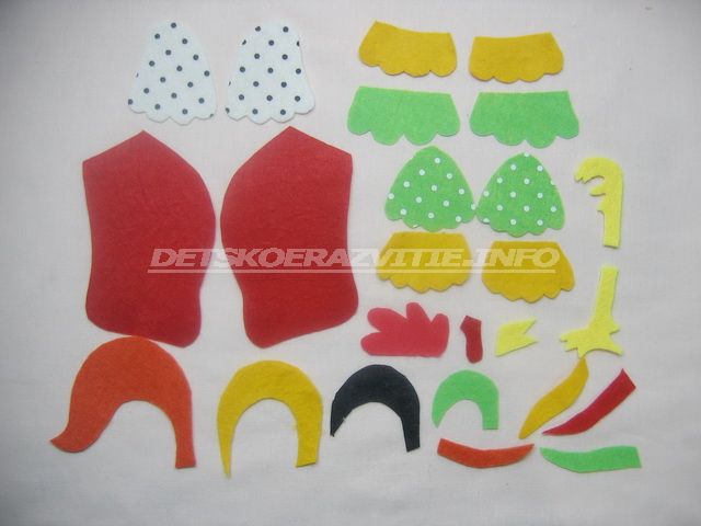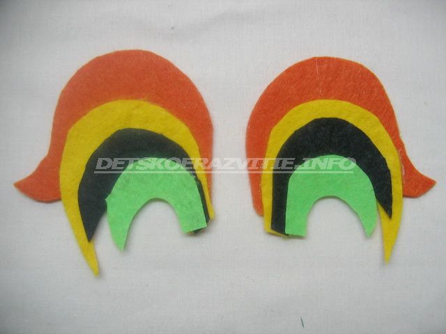 Всі представлені деталі необхідно вирізати з фетру вибраних відтінків. Крім лап, дзьоба, гребеня і борідки, інші деталі вирізають симетричними парами.