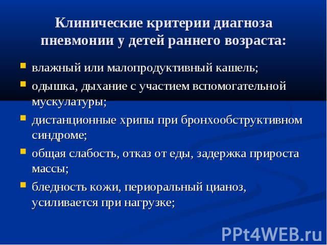 Пневмонія — інфекційна хвороба, яка викликається вірусами і бактеріями, рідше грибками. Відповідно, дитяча пневмонія може бути вірусного, бактеріального або грибкового походження. Також вона буває односторонньою (запальний осередок формується в одному легкому) і двостороннім (запальний осередок зачіпає обидва легенів).
