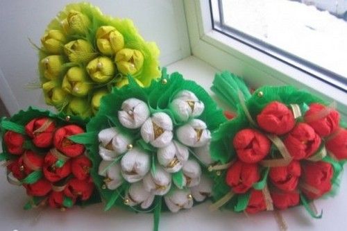 Жодне свято не обходиться без букета. Крім живих квітів, приємно здивувати маму можна букетом квітів:
