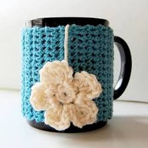 Ексклюзивний одяг для маминої чашки можна зв’язати гачком, застосовуючи всім знайомий прийом стовпчик без накиду.