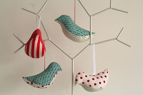 М’які іграшки на підставці своїми руками виготовити дуже просто. З клаптиків тканини різного кольору потрібно зробити викрійку тієї фігури, яка буде розташовуватися на дереві.