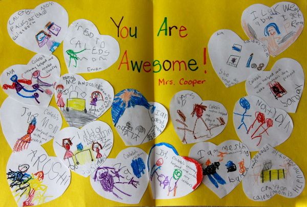 Зробити її дуже просто. Кожна дитина малює долоньки фарбою. На ватмані залишає слід від руки. Кожен, у відбитку своєї долоньки підписує своє прізвище та ім’я. Нижче, дитина пише побажання або комплімент педагогу. У центрі газети можна розмістити фото класного керівника.