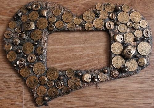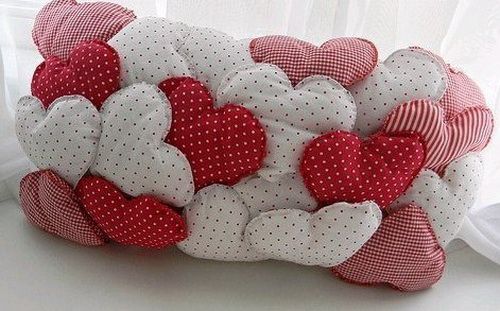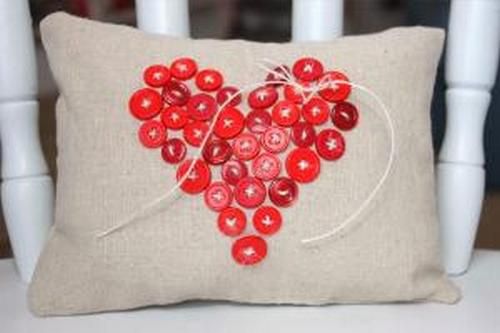 - звичайна подушка з натуральних тканин, декорована серцем з гудзиків або кружечків фетру;