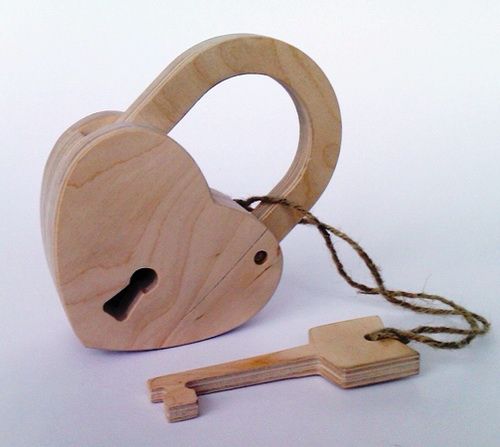 Ексклюзивним подарунком стане символ незмінності почуттів пари. Її втіленням стане виготовлений з фанери замочок серце з ключиком.