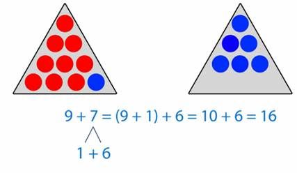На картинці доступно описано рішення з застосуванням складу числа. Дитина округлює до десяти і додає залишок.